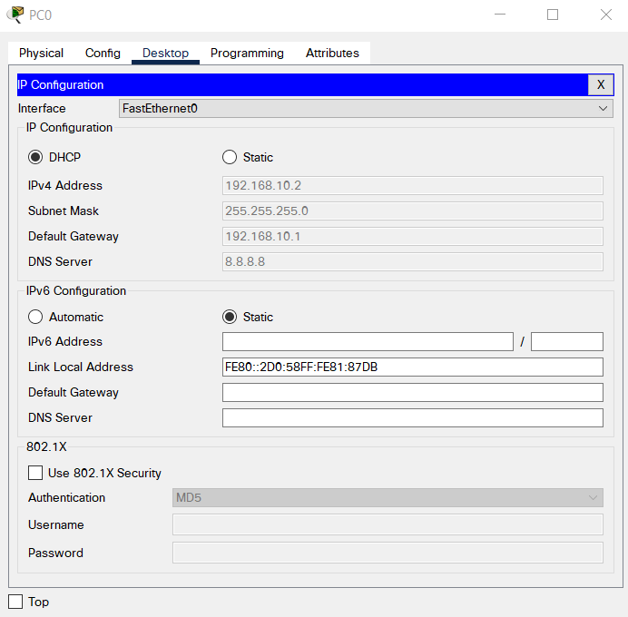 Dan Terakhir Ubah PC IP address dari mode Static ke DHCP maka akan terisi otomatis dengan Network yang kita tambahkan tadi Seperti ini :